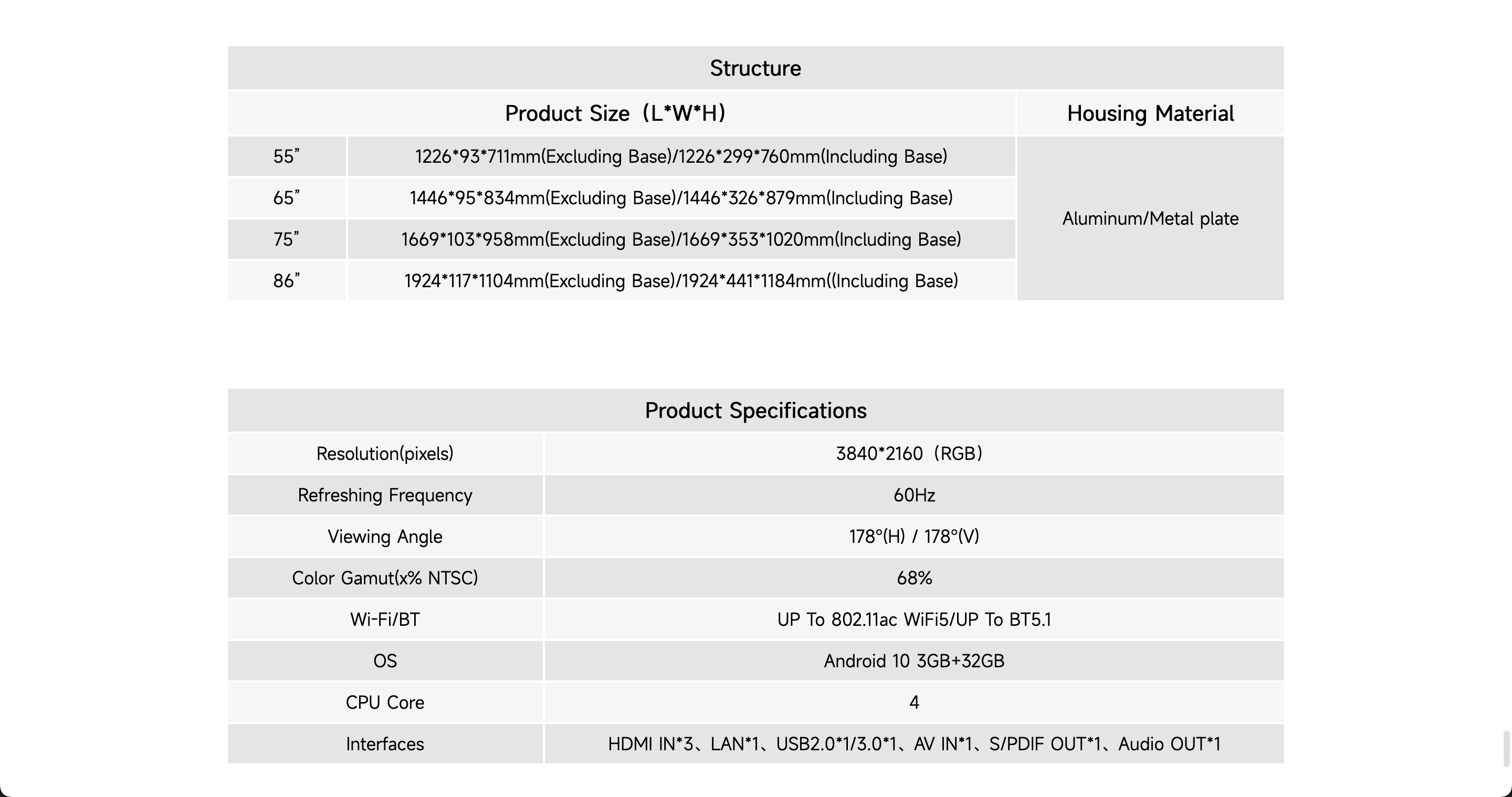 55", 65", 75", 86"