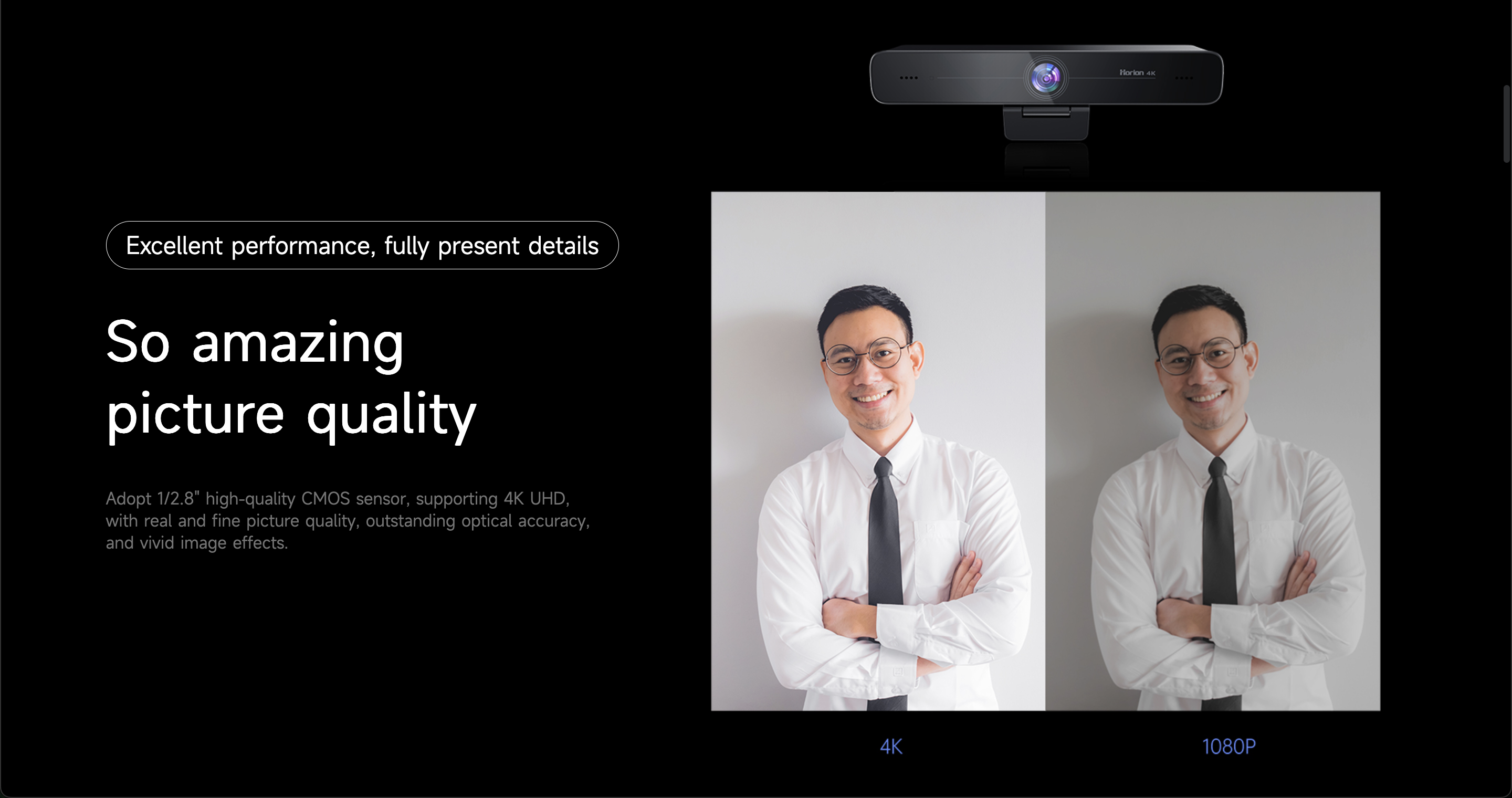 Horion HC-5M Smart UHD Camera, 1/2.8″ CMOS Sensor, 4K UHD, 10× Optical Zoom, Built-in Mic, 100° FoV, Plug & Play