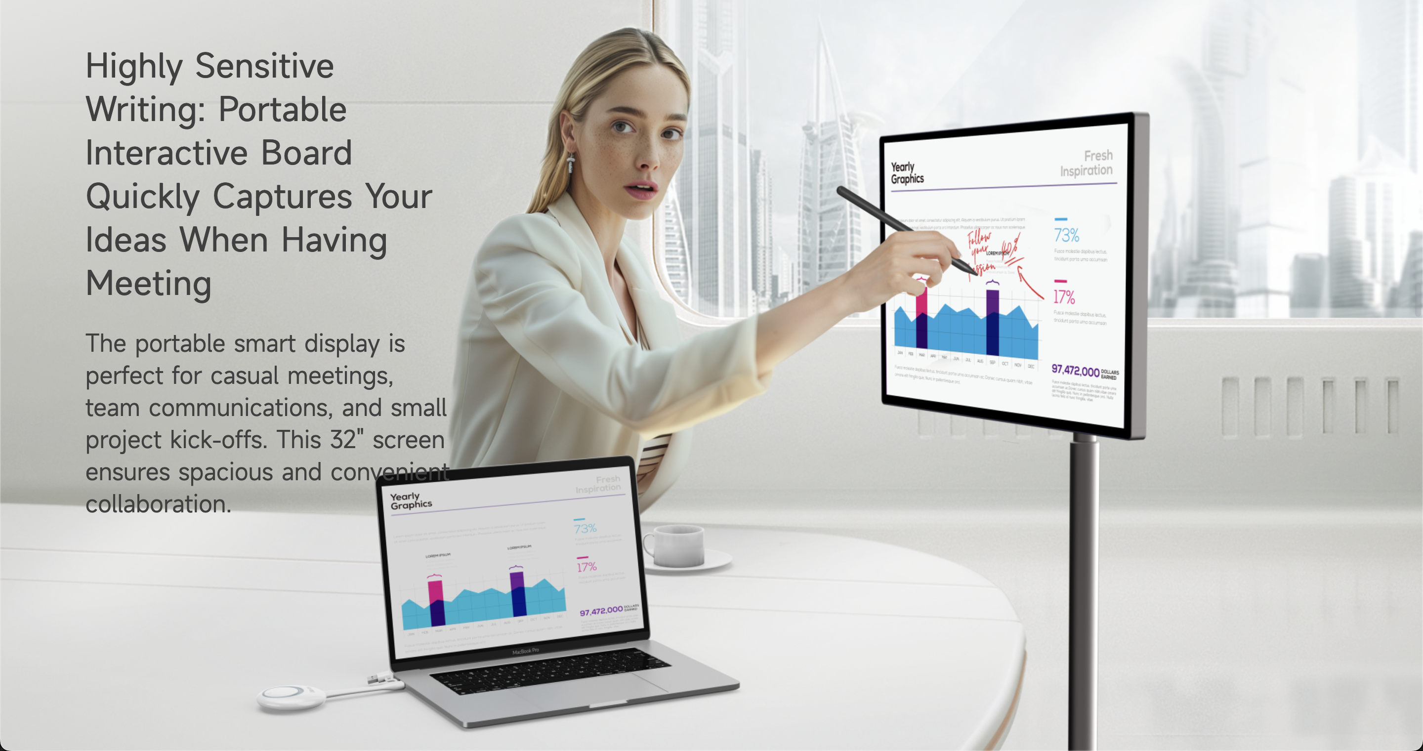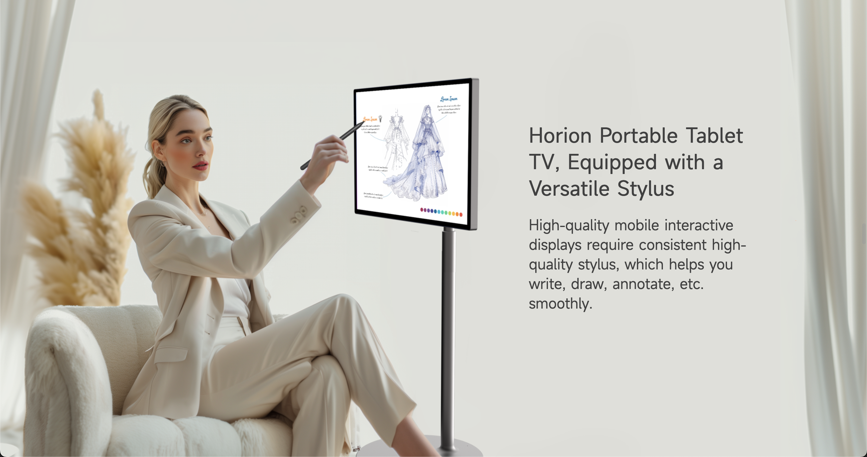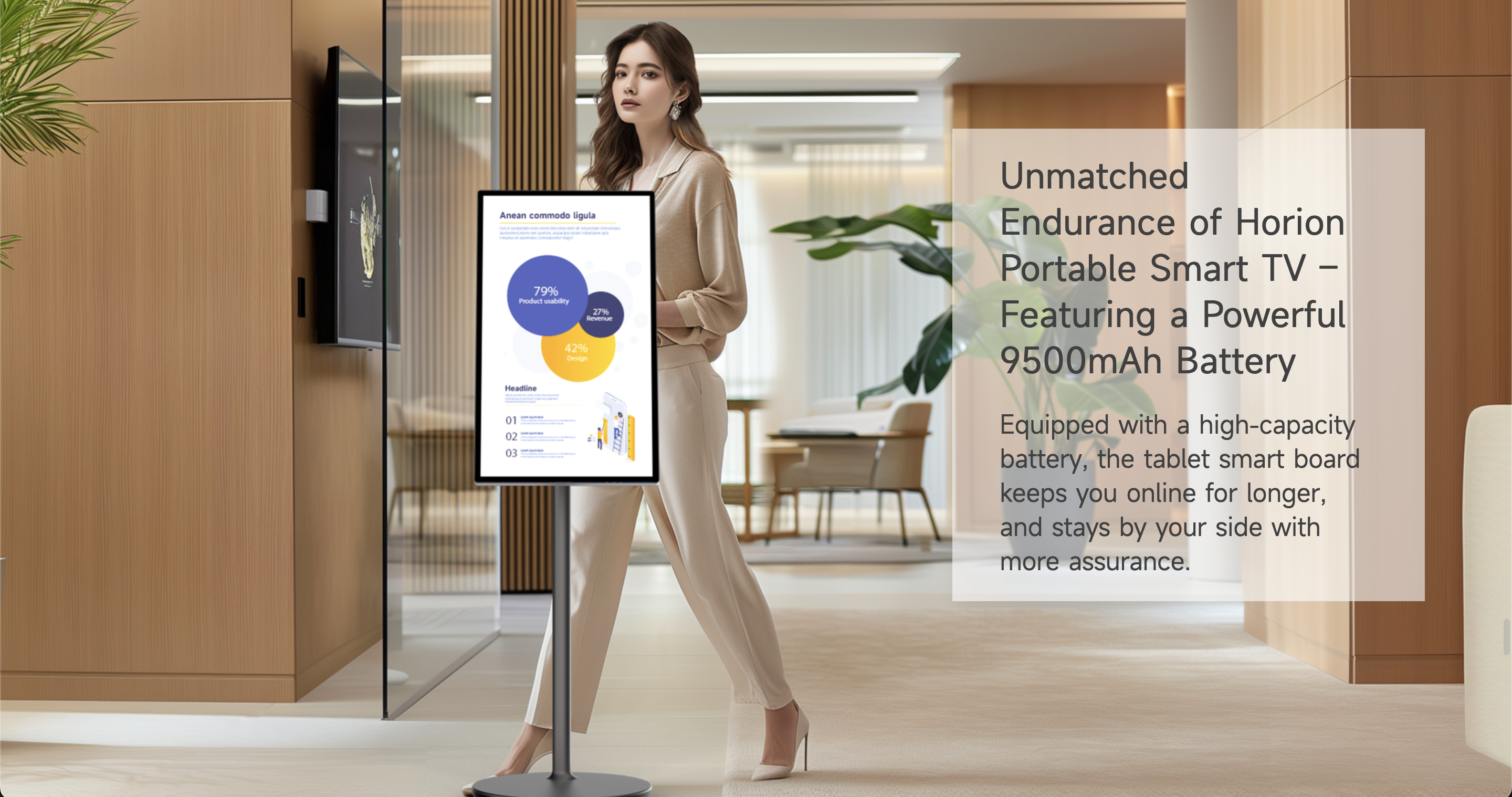Horion 32MR1A 32″ 4K Mobile Touch Screen, 90 Degrees Vertical Rotation Support, 9500mAh Battery.